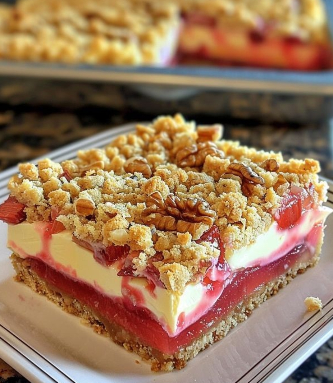 These Rhubarb Cheesecake Squares are a delightful twist on classic cheesecake — tangy rhubarb layered over creamy filling, all nestled between a buttery oat crust and crumb topping. Perfect for spring gatherings, potlucks, or as a make‑ahead dessert, they balance sweet and tart flavors beautifully.