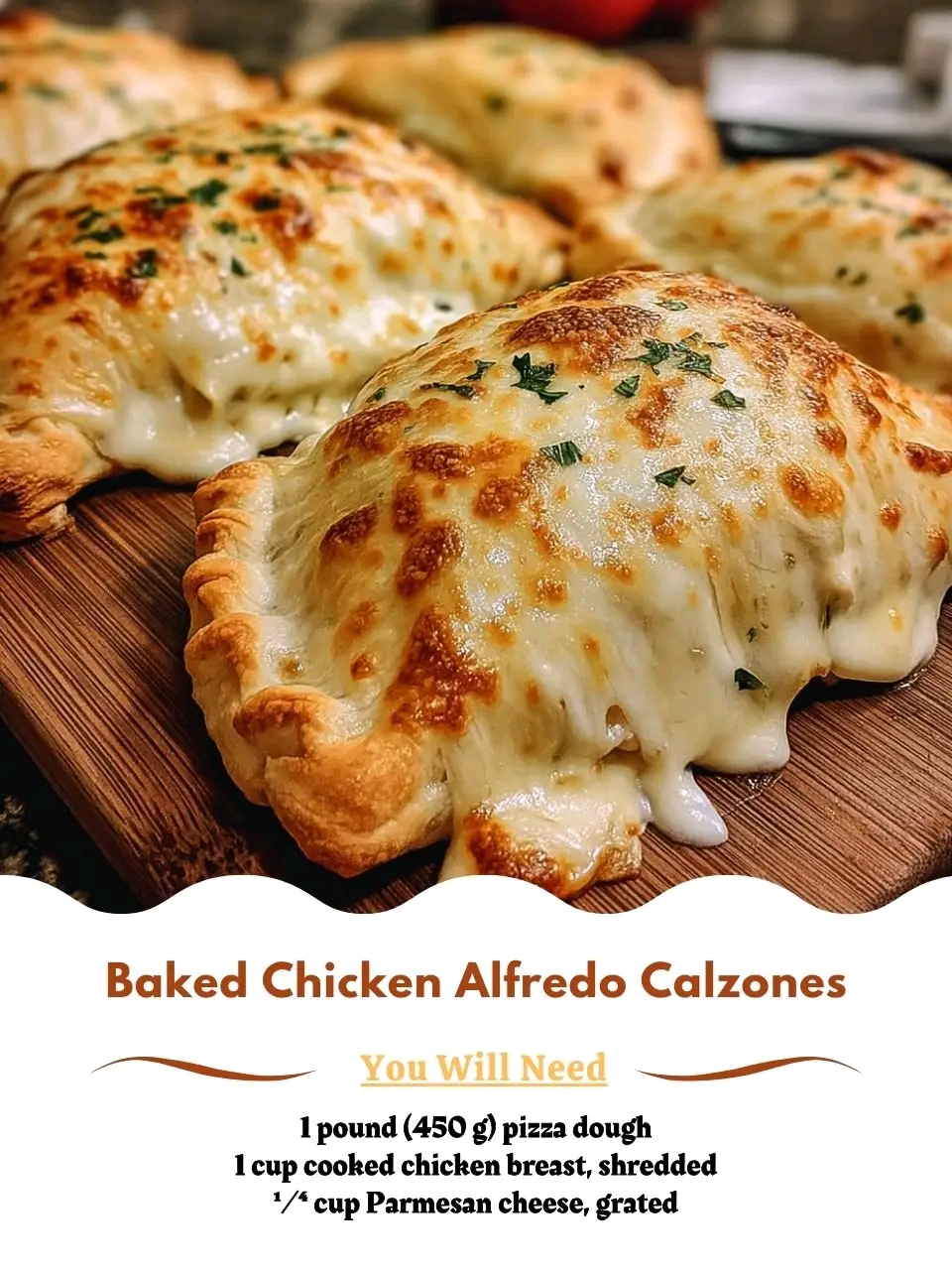 Baked Chicken Alfredo Calzones – Cheesy, Creamy, and Oven-Golden