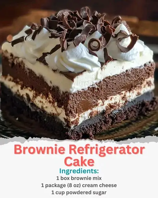 This Brownie Refrigerator Cake layers fudgy brownies with a creamy cheesecake filling, silky chocolate pudding, and fluffy whipped topping. It’s a chilled dessert that feels decadent yet refreshing — perfect for potlucks, holidays, or anytime you want a make‑ahead treat that impresses.