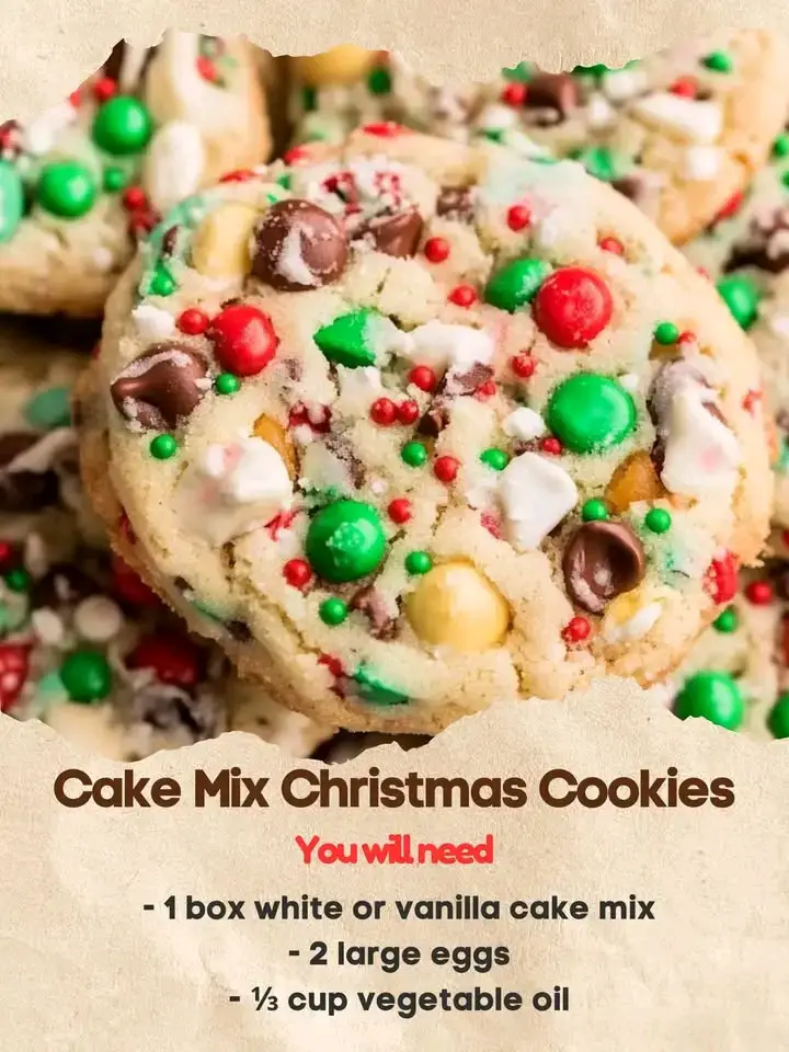 These Cake Mix Christmas Cookies are the ultimate holiday shortcut—soft, chewy, and bursting with festive sprinkles. Using a simple cake mix base, you can whip up a batch in minutes, making them perfect for last‑minute holiday gatherings, cookie exchanges, or edible gifts. With their colorful red and green decorations, they’ll brighten any dessert table and bring joy to every bite.