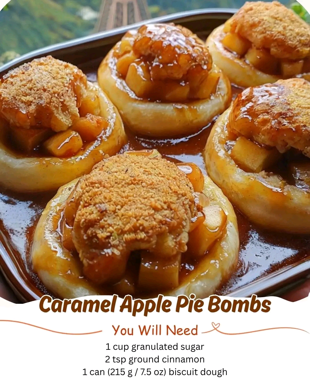 When the air turns crisp and apples are in season, there’s no better way to celebrate than with a dessert that captures the essence of autumn. These Caramel Apple Pie Bombs are everything you love about apple pie—warm spices, tender apples, and gooey caramel—wrapped in golden, crispy biscuit dough and rolled in cinnamon sugar.