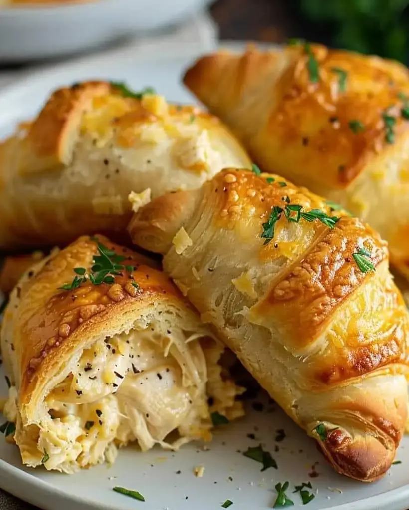 Flaky crescent rolls stuffed with creamy chicken and melted cheese—your new favorite 25-minute comfort bite