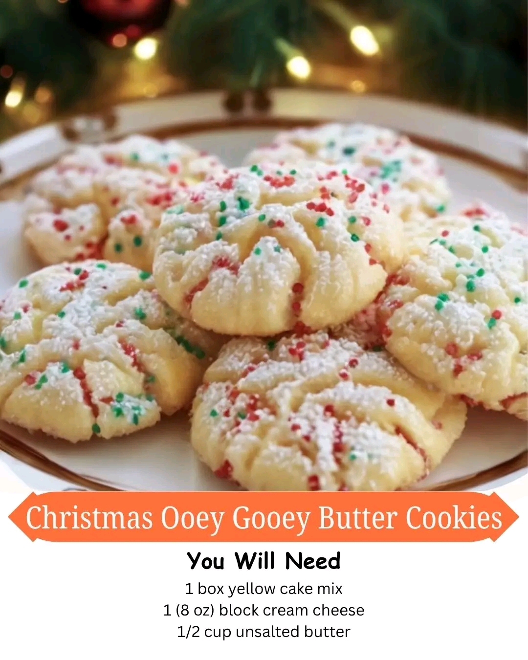 Christmas Ooey Gooey Butter Cookies – Soft, Sweet & Sparkling with Holiday Magic