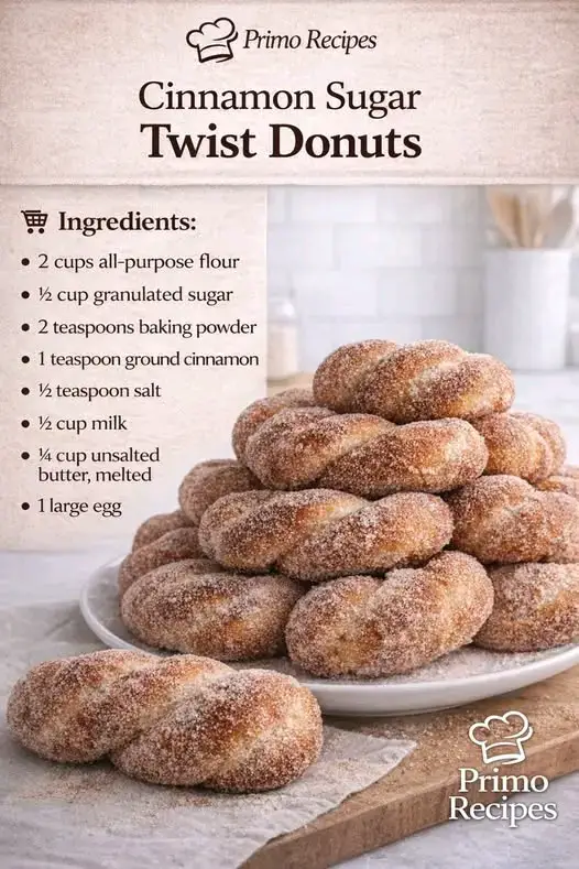These Cinnamon Sugar Twist Donuts are a delightful homemade treat — soft, golden, and coated in sweet cinnamon sugar. They’re easy to make, fun to shape, and guaranteed to bring joy to any table.