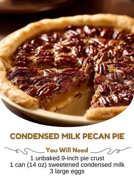 Pecan pie is one of the most beloved desserts in American baking, especially during the holidays. Traditionally made with corn syrup, this version uses sweetened condensed milk for a creamier texture and a slightly caramelized flavor. The result is a pie that’s indulgent yet balanced, with crunchy pecans nestled in a silky filling.