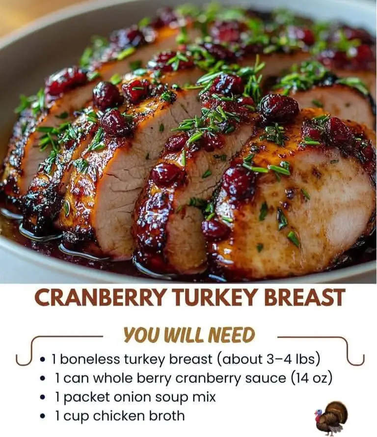 Cranberry Turkey Breast is a dish that marries tradition with convenience, flavor with simplicity. It’s ideal for holiday meals, intimate dinners, or meal prep for the week. The slow cooker method ensures consistent results with minimal effort, making it accessible to cooks of all skill levels. Its festive appearance and comforting taste make it a crowd-pleaser, while its adaptability allows for creative variations. Whether served with mashed potatoes, roasted vegetables, or a crisp salad, it anchors the meal with warmth and satisfaction. For best results, prepare it a day ahead and reheat gently—the flavors deepen overnight, enhancing the experience.