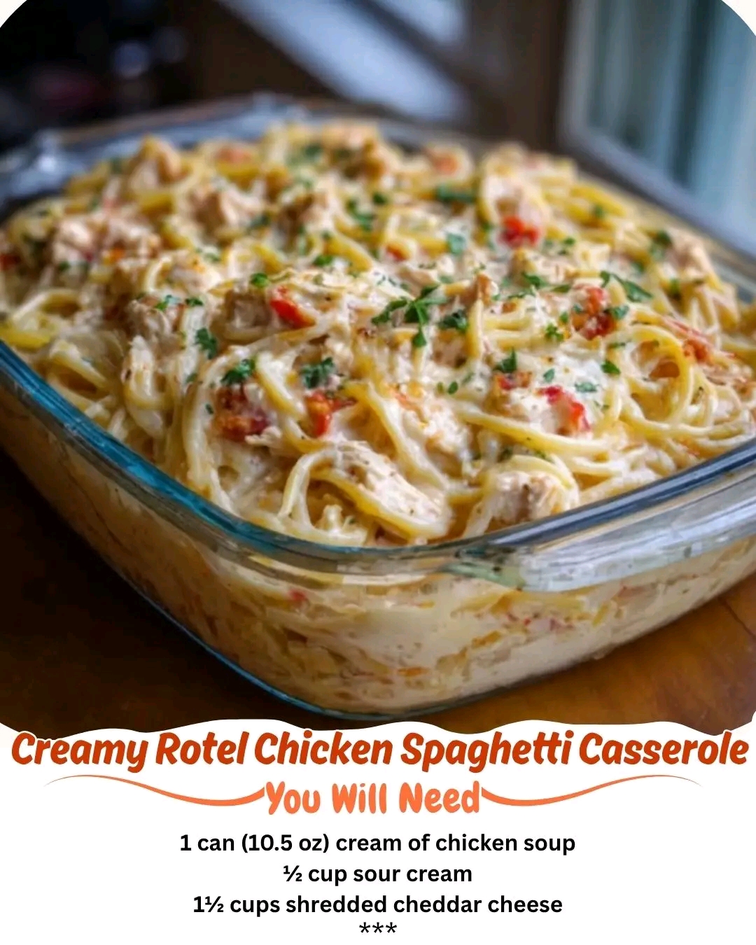 Imagine scooping into a bubbling casserole dish, the cheese stretching as you serve. The spaghetti is creamy, the chicken tender, and the Rotel adds just the right kick. It’s the kind of dish that feels nostalgic yet exciting — a comfort food classic with a Tex‑Mex twist.