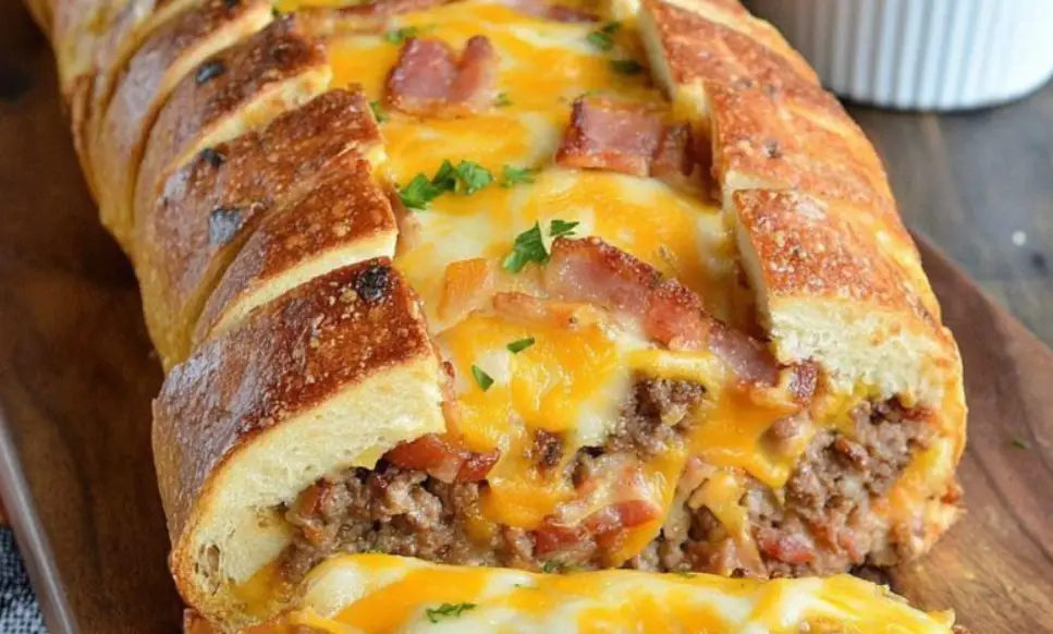Garbage Bread is more than a novelty—it is a well-balanced, flavor-packed baked dish that transforms familiar ingredients into something truly memorable. With its golden crust, savory filling, and unmistakable cheeseburger essence, this recipe consistently delivers outstanding results and undeniable crowd appeal.