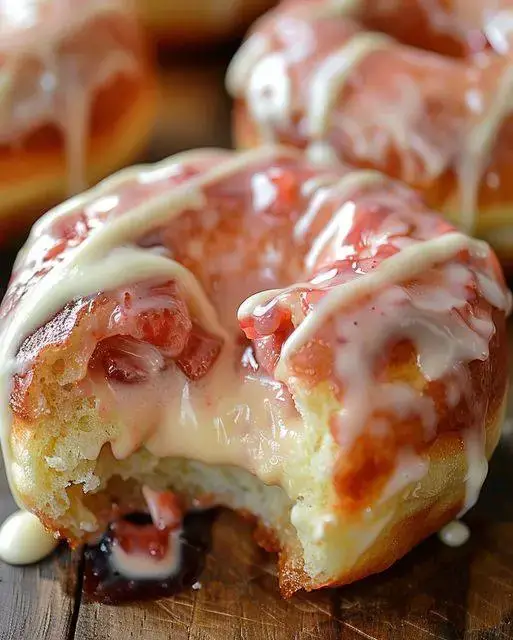 These soft, fluffy donuts are packed with fresh strawberries, filled with tangy cheesecake, and topped with a sweet vanilla glaze—perfect for brunch, dessert, or anytime you need a little joy.