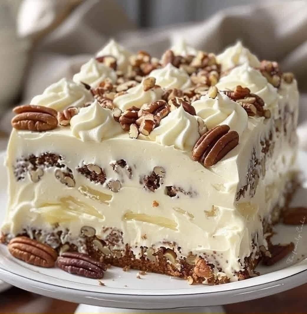 The cakeās combination of pineapple, cream cheese, and pecans is not accidental. Pineapple was considered an exotic fruit in mid-century America, often associated with celebration and luxury. Cream cheese frosting became popular in the 1950s and 1960s, especially in Southern kitchens, where it was used to elevate simple cakes into decadent masterpieces. Pecans, native to the South, added both texture and a sense of authenticity.