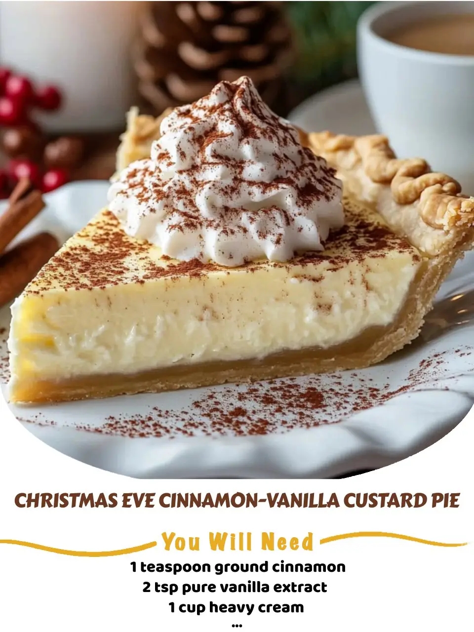 This Christmas Eve Cinnamon-Vanilla Custard Pie is a celebration of simplicity and warmth. With its creamy texture, gentle spice, and classic flavor, it’s the kind of dessert that brings people together. Whether you serve it after a festive dinner or enjoy a quiet slice by the fire, this pie is sure to become a cherished holiday tradition.
