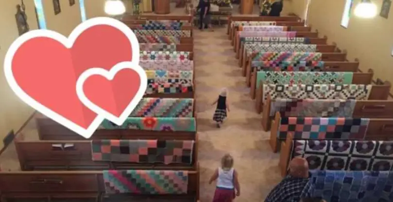 As they gathered quilts, they realized that there was almost one quilt per pew!
