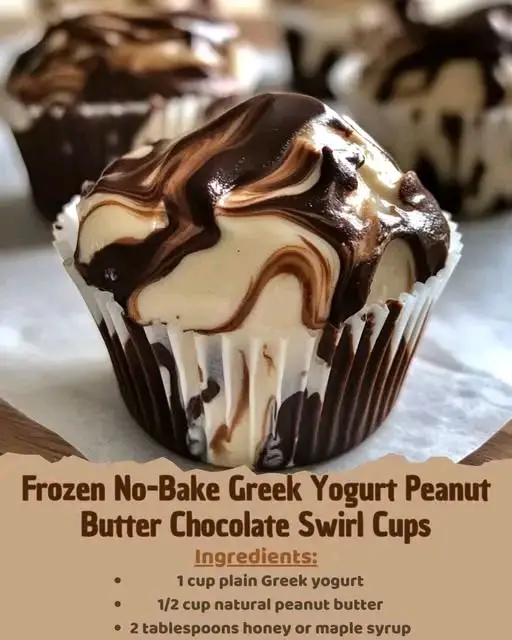 These Frozen No‑Bake Greek Yogurt Peanut Butter Chocolate Swirl Cups are a quick, healthy, and visually stunning dessert. With their creamy filling, crunchy chocolate shell, and elegant swirl, they’re sure to become a freezer staple for both everyday snacking and special occasions.