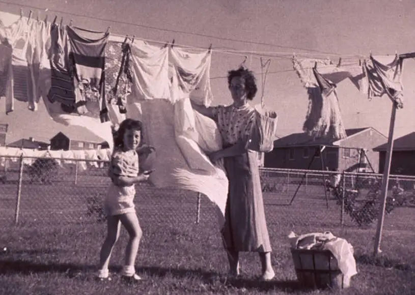 Back in the old days the laundry was often done in a washtub, with bar soap (or flakes) and a washboard. Some families might have had a ringer, which helped to reduce the drying time by a fair bit. Even once electric washing machines came out, many people did not have the space or money to then also buy a clothes dryer. Given that everyone already had a clothesline, it might have seemed like an unnecessary extravagance and the real labor was all in the washing and ironing anyways. Plus, there’s nothing that smells as good as laundry dried on the clothesline. Back then there were quite a few rules about how the clothes should be hung out. These rules were to save time and money and if you didn’t follow them you’d most likely get a stern talking to by Mom or Grandma.