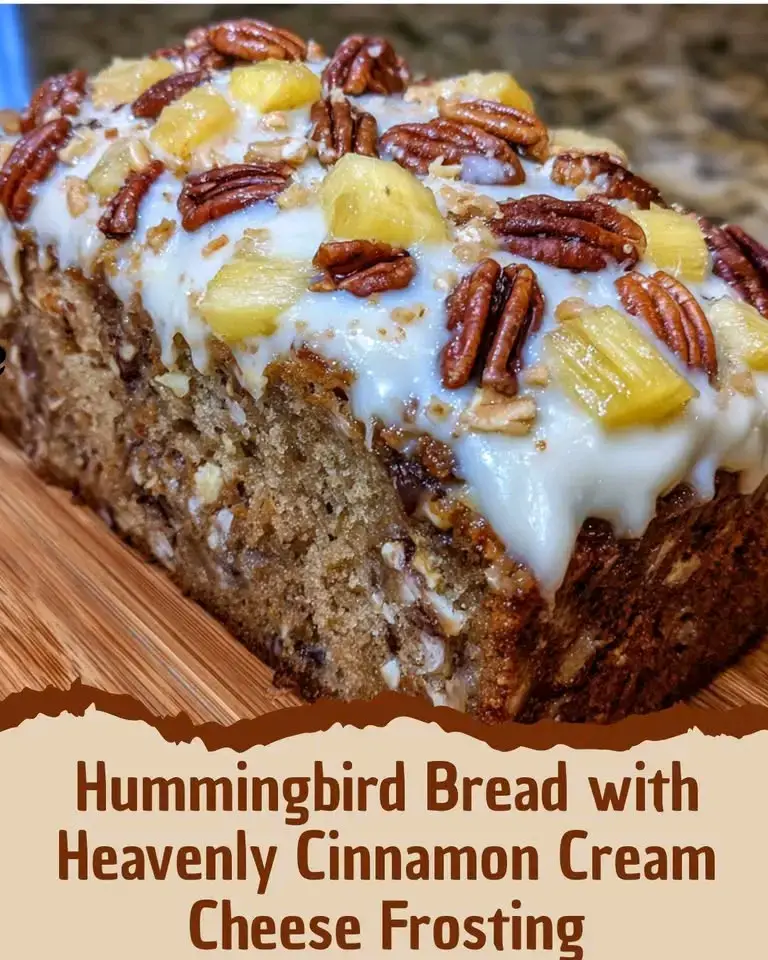 This Hummingbird Bread is a delightful twist on classic banana bread, infused with tropical flavors of pineapple, coconut, and pecans. Moist, tender, and bursting with sweetness, it’s finished with a luscious cinnamon cream cheese frosting that takes it to bakery‑worthy heights. Perfect for brunch, holidays, or simply enjoying with a cup of coffee, this loaf is a showstopper that feels both nostalgic and exotic.