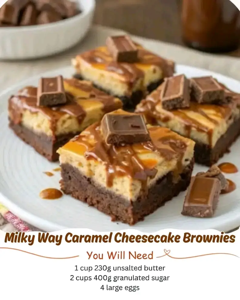 These Milky Way Caramel Cheesecake Brownies are the kind of dessert that makes people ask for the recipe—and then sneak a second piece. With their rich chocolate base, creamy cheesecake center, and gooey caramel swirl, they’re pure indulgence in every bite. Whether you’re baking for a crowd or just treating yourself, this recipe is a guaranteed crowd-pleaser.