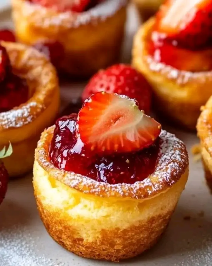 These Mini Brown Butter Popovers with Jammy Strawberries are airy, golden bites coated in nutty browned butter and lemon sugar, then crowned with juicy strawberries. They’re elegant yet playful — perfect for brunch, holiday gatherings, or a sweet finish to any meal. The combination of crisp popovers, citrusy sugar, and jammy fruit makes them irresistible.