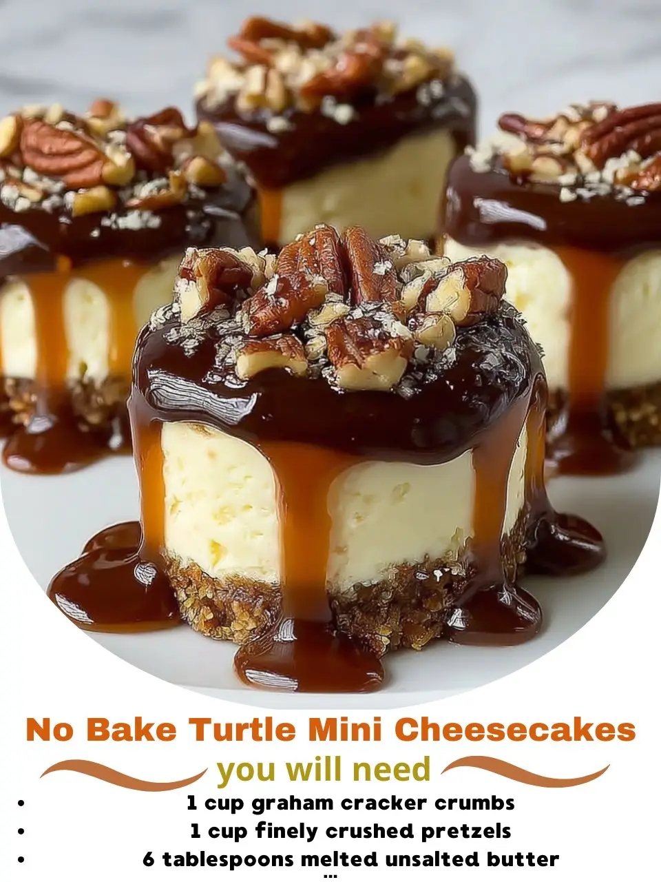 No Bake Turtle Mini Cheesecakes