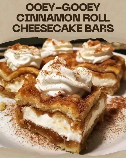 Ooey-Gooey Cinnamon Roll Cheesecake Bars – Sweet, Creamy & Irresistibly Cozy
