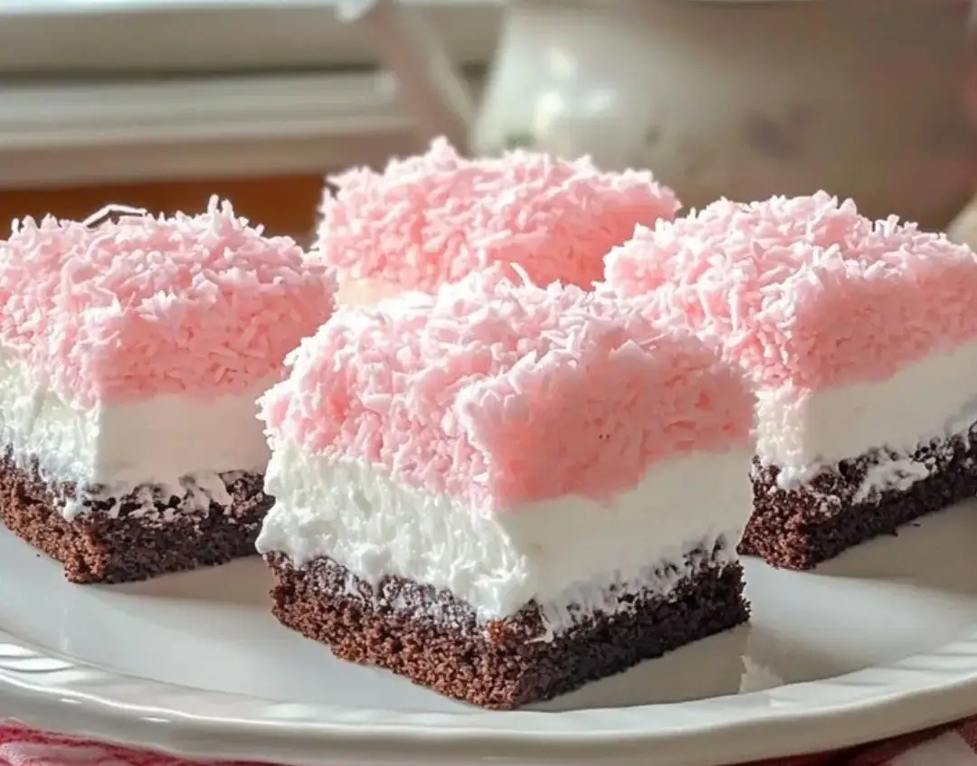 With a rich chocolate cake base, a fluffy cream layer, and a snowy blanket of pink coconut, these bars are as beautiful as they are indulgent. They’re perfect for birthdays, baby showers, Valentine’s Day, or any time you want to add a little whimsy to your dessert table.