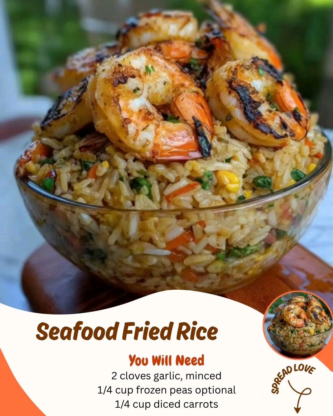 This Seafood Fried Rice is a vibrant, flavor‑packed dish that combines tender shrimp, colorful vegetables, and perfectly seasoned rice. Topped with smoky grilled shrimp, it’s a restaurant‑quality meal you can make at home. Whether served as a main course or a show‑stopping side, this recipe is quick, customizable, and guaranteed to impress.