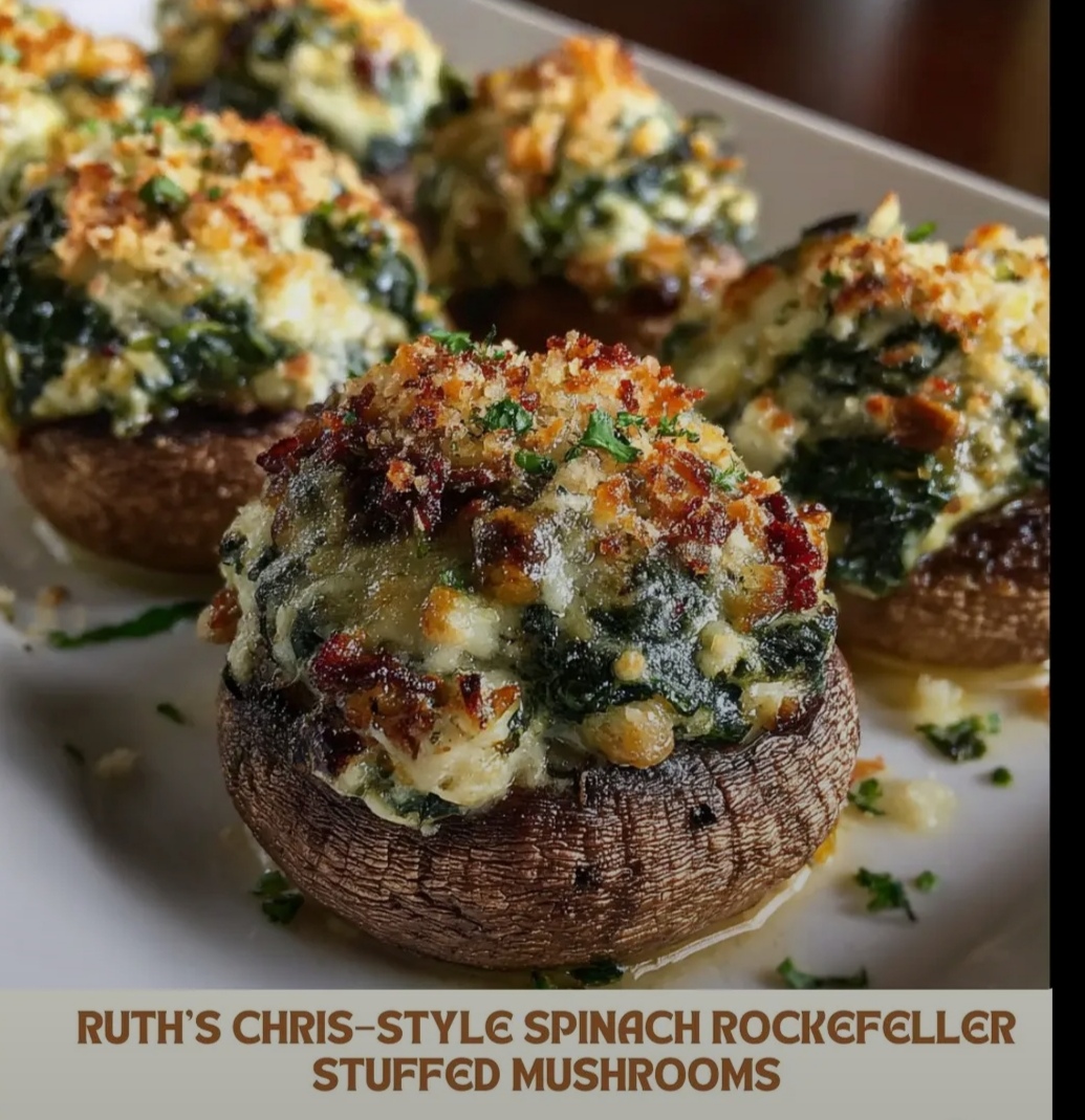 Ruth’s Chris–Style Spinach Rockefeller Stuffed Mushrooms