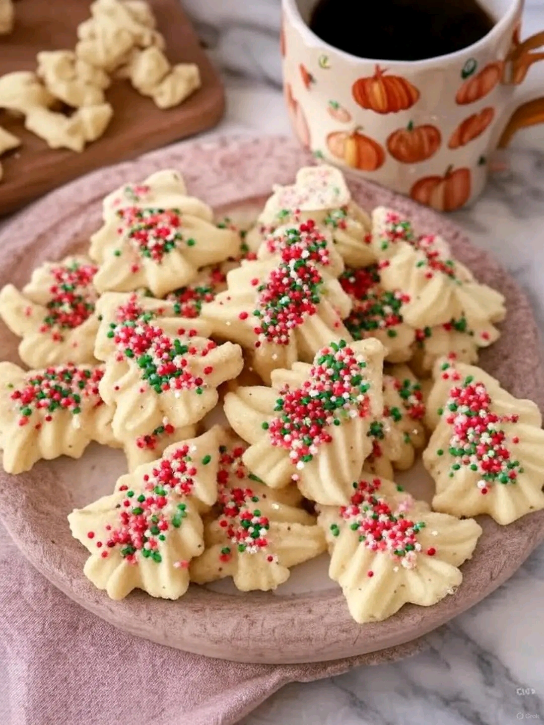 These classic butter cookies are piped into festive shapes and decorated with sprinkles—perfect for cookie trays, edible gifts, or cozy afternoons with tea.