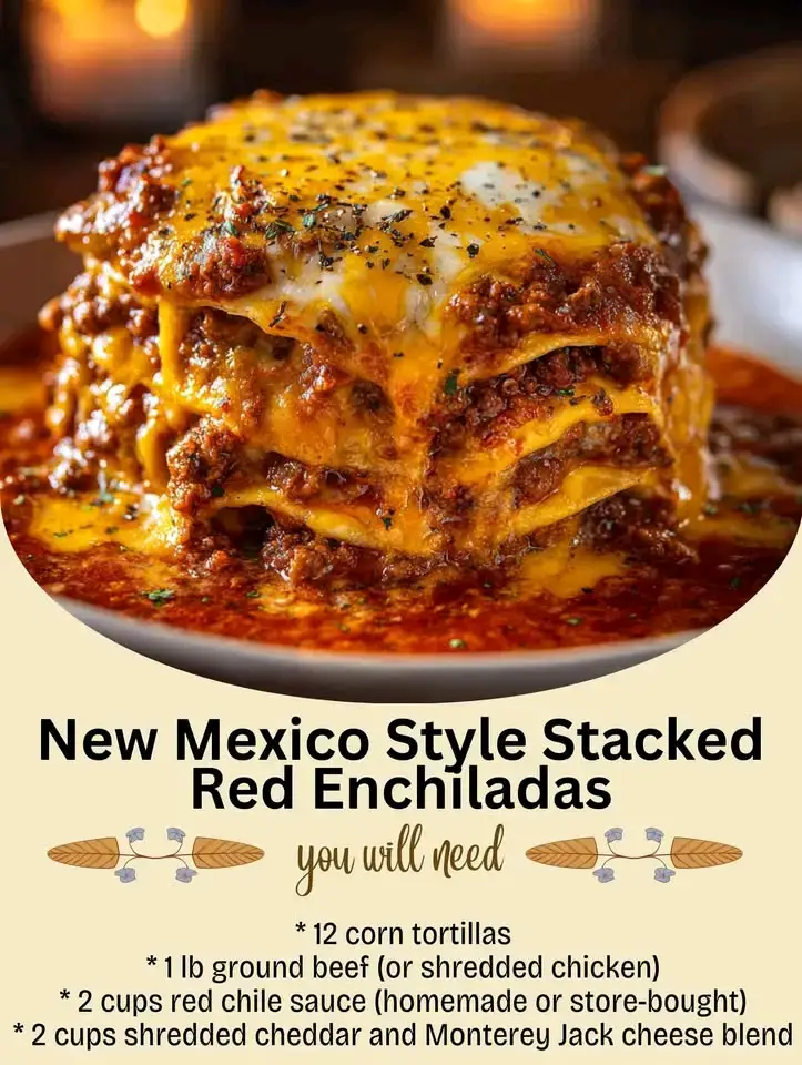Few dishes capture the soul of Southwestern comfort food like New Mexico Style Stacked Red Enchiladas. Unlike rolled enchiladas, this version layers soft corn tortillas with seasoned beef (or chicken), gooey melted cheese, and a generous pour of smoky red chile sauce. The result is a saucy, hearty casserole‑style dish that’s messy in the best way and deeply satisfying.