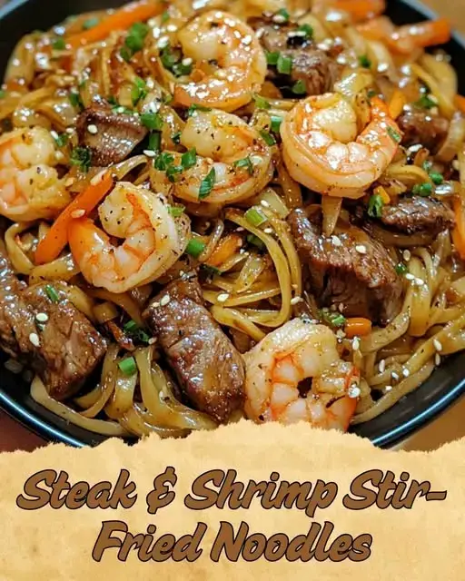 If you’ve ever craved the bold, sizzling flavors of your favorite noodle takeout but wanted to recreate it at home, this is the recipe for you. These Steak & Shrimp Stir-Fried Noodles are the ultimate weeknight indulgence—tender slices of seared steak, juicy shrimp, and crisp-tender vegetables tossed with noodles in a sweet and savory sauce that clings to every bite.