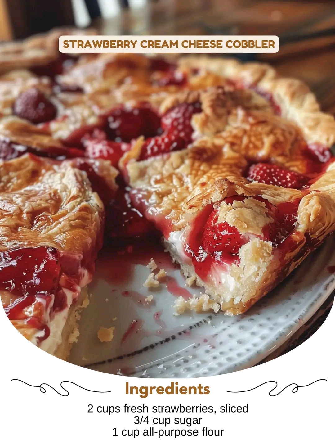 This Strawberry Cream Cheese Cobbler is creamy, fruity, and bursting with spring flavor. With its bubbling strawberries and melty cream cheese pockets, it’s a dessert that feels both rustic and indulgent — a true seasonal favorite.