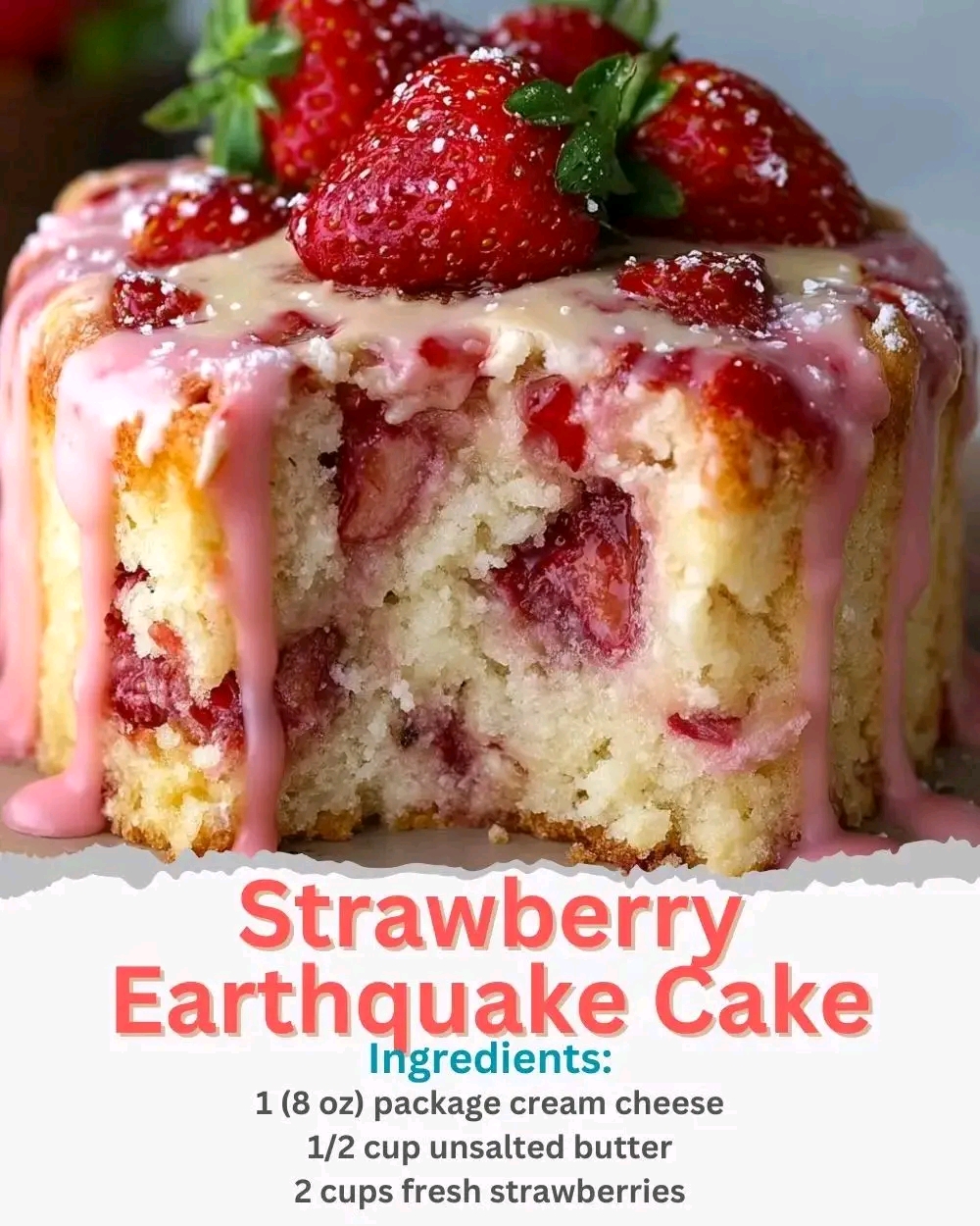Strawberry Earthquake Cake – Gooey, Fruity & Irresistible